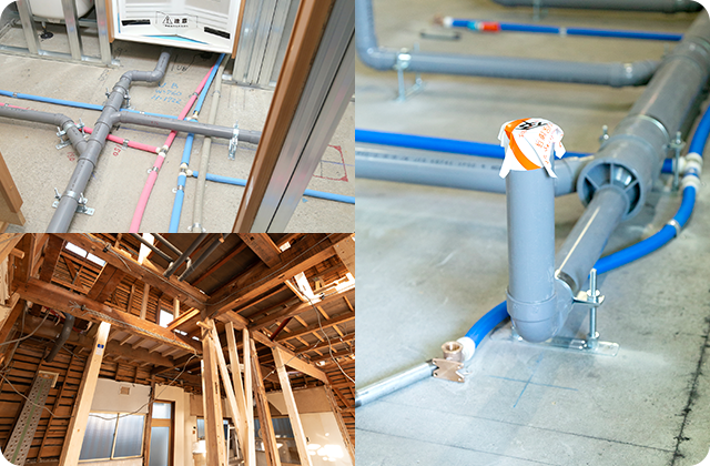 普段の生活では見えない部分ですが、少しでも手を抜くと、トラブルの原因になってしまいます。丁寧に施工を行い、より高品質で安心の給排水設備をお届けいたします。